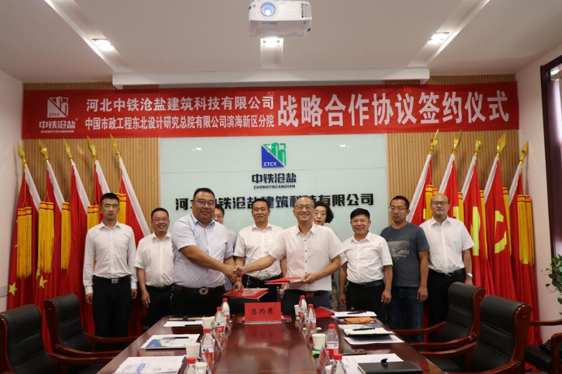 2020年7月9日,河北中鐵滄鹽建筑科技有限公司與中國市政工程東北設(shè)計(jì)研究總院有限公司濱海新區(qū)分院戰(zhàn)略合作簽約儀式成功舉行。此次活動特別邀請了滄州鹽業(yè)集團(tuán)黨委書記、董事長劉建軍、工會主席李金營出席會議,中鐵滄鹽副董事長王峰偉,總經(jīng)理王志巖,東北設(shè)計(jì)研究院濱海分院院長紀(jì)云公,副院長孫洪艷等相關(guān)領(lǐng)導(dǎo)共同出席此次戰(zhàn)略合作簽約儀式。